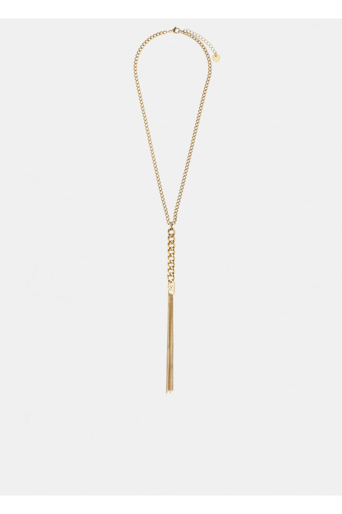 Náhrdelník je z novej kolekcie šperkov LIU JO z chirurgickej ocele, dĺžky 75 cm, v zlatom prevedení s príveskom, na konci pevnej časti prívesku sú písmená LJ, logo LIU JO.