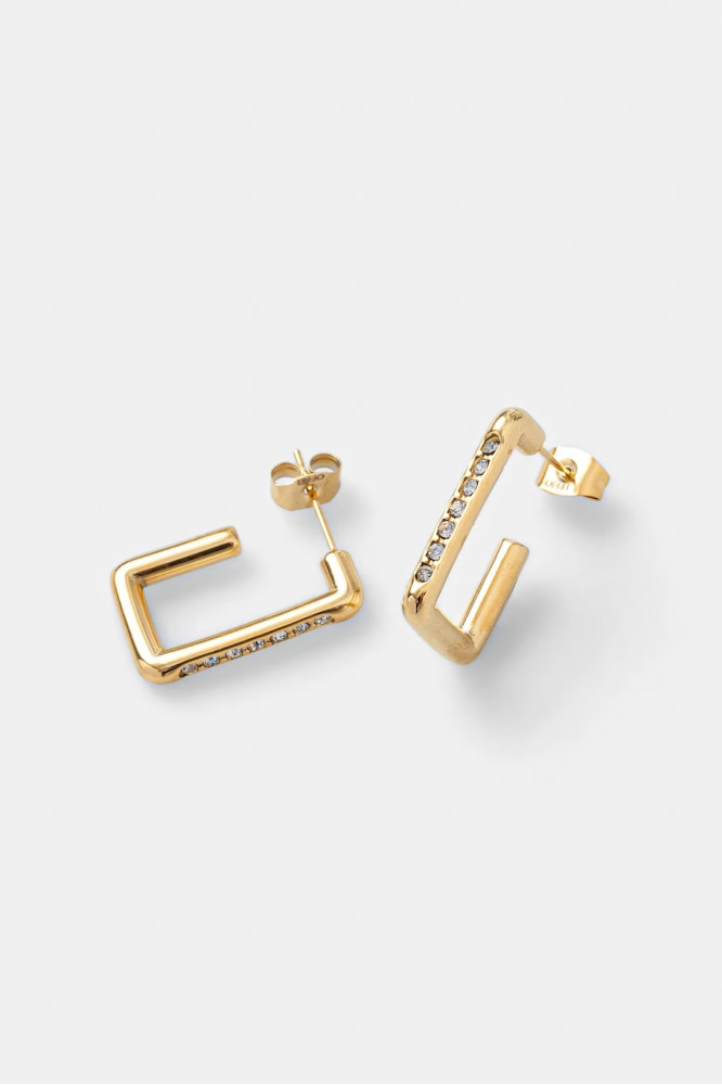 Moderné náušnice sú z novej kolekcie šperkov LIU JO  z chirurgickej ocele, dĺžka 1,0 cm, v zlatom prevedení vykladané zirkónmi.
