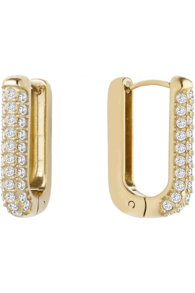 Moderné náušnice sú z novej kolekcie šperkov LIU JO  z chirurgickej ocele, dĺžka 2,0 cm, v zlatom prevedení vykladané zirkónmi.