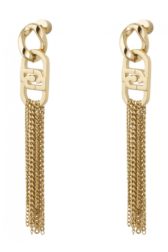 Moderné náušnice sú z novej kolekcie šperkov LIU JO z chirurgickej ocele, dĺžka 7 cm, v zlatom prevedení s logom LIU JO. Zapínanie na motýlik.