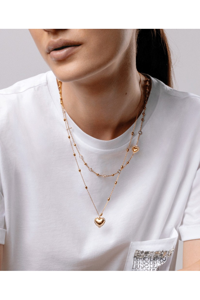 Náhrdelník je z novej kolekcie šperkov LIU JO z chirurgickej ocele, dĺžky 50 cm, s možnosťou zapnutia na väčšiu dĺžku-dá sa regulovať. v zlatom prevedení. Náhrdelník má prívesok srdce s  nápisom LIU JO.