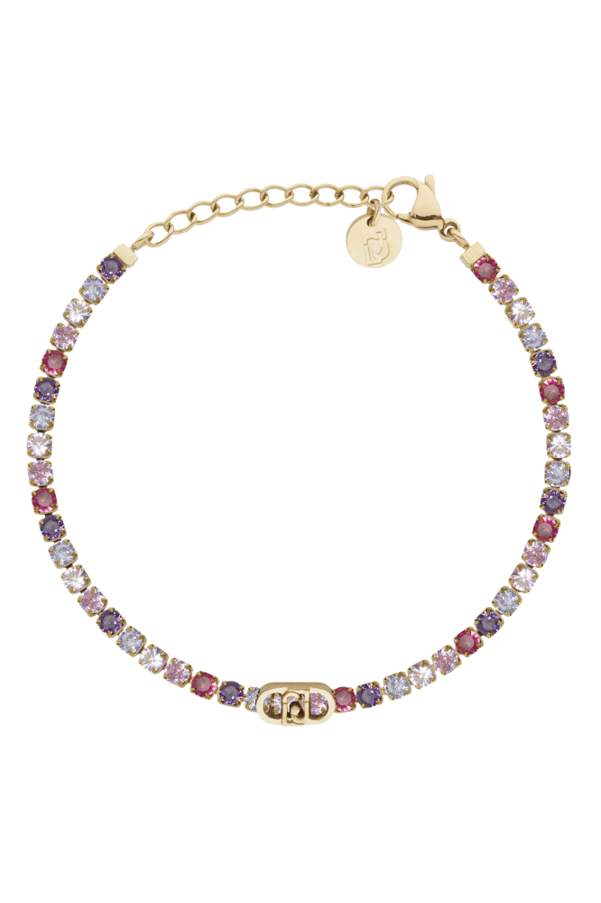 Náramok je z novej kolekcie šperkov LIU JO z chirurgickej ocele, dĺžky 17 cm, v zlatom prevedení s farebnými trblietavými zirkónmi s možnosťou zapnutia na väčšiu dĺžku.